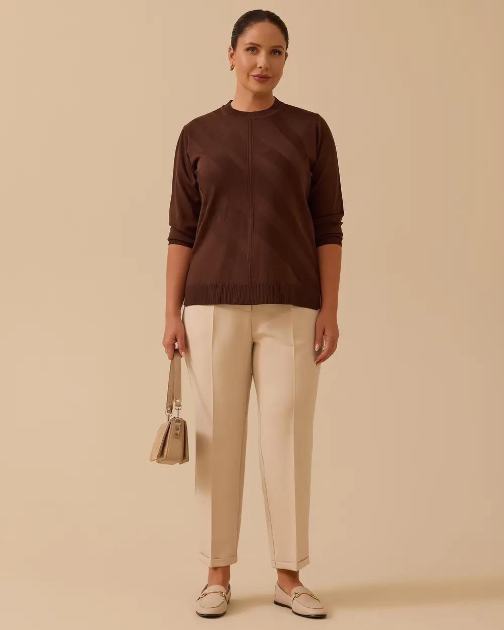 Gala-xi Günlük Triko Bluz -252714006 KAHVERENGİ