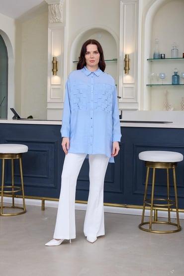 MARWA İPEK CUPRA GÖMLEK MA11.06 MAVİ