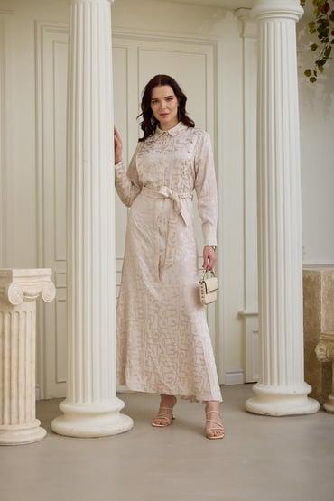 MERWE İPEK SATEN ELBİSE MA06.02 Bej