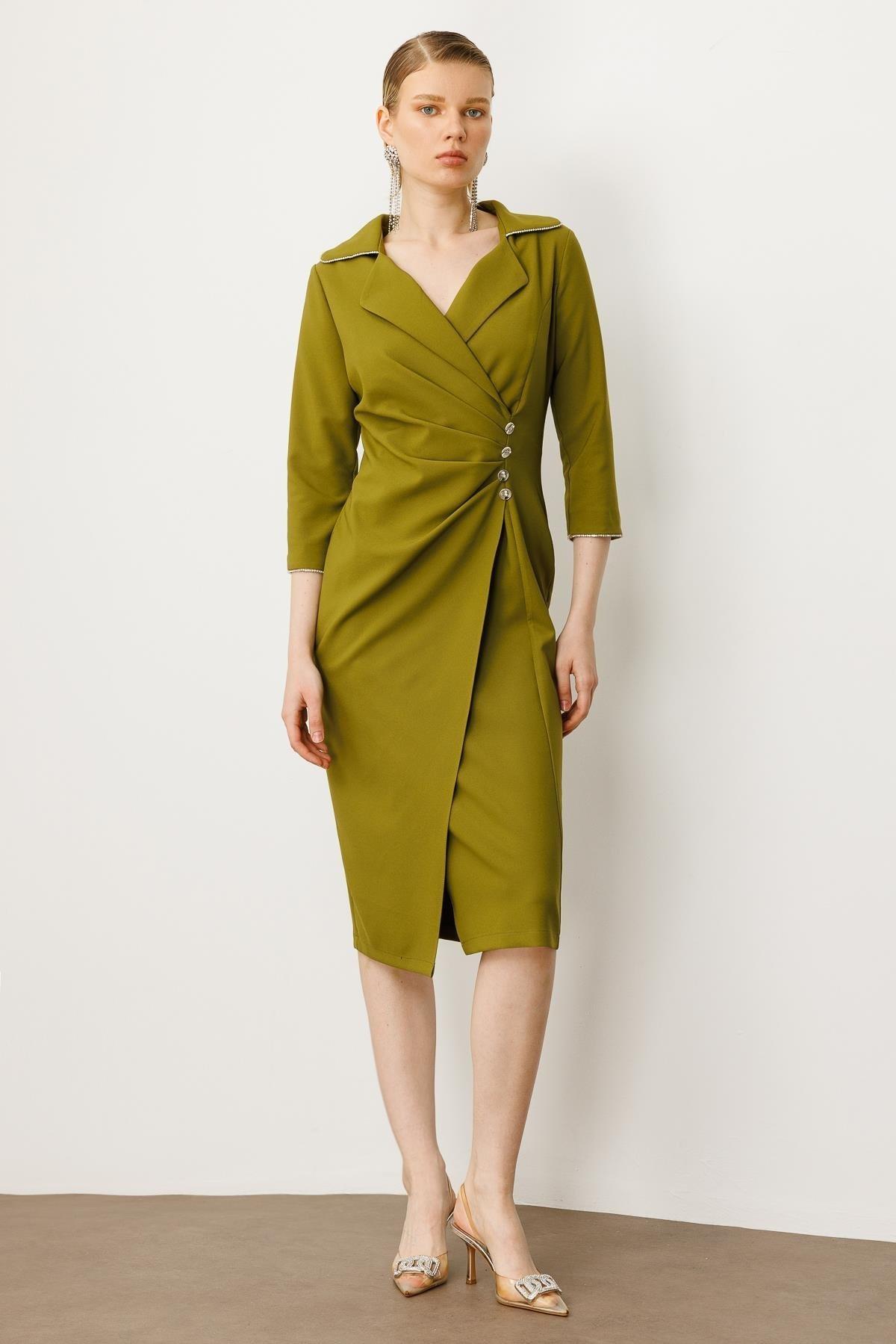 MODAİLGİ TRUVAKAR KOL MİDİ BOY ELBİSE 06630 OLİVE
