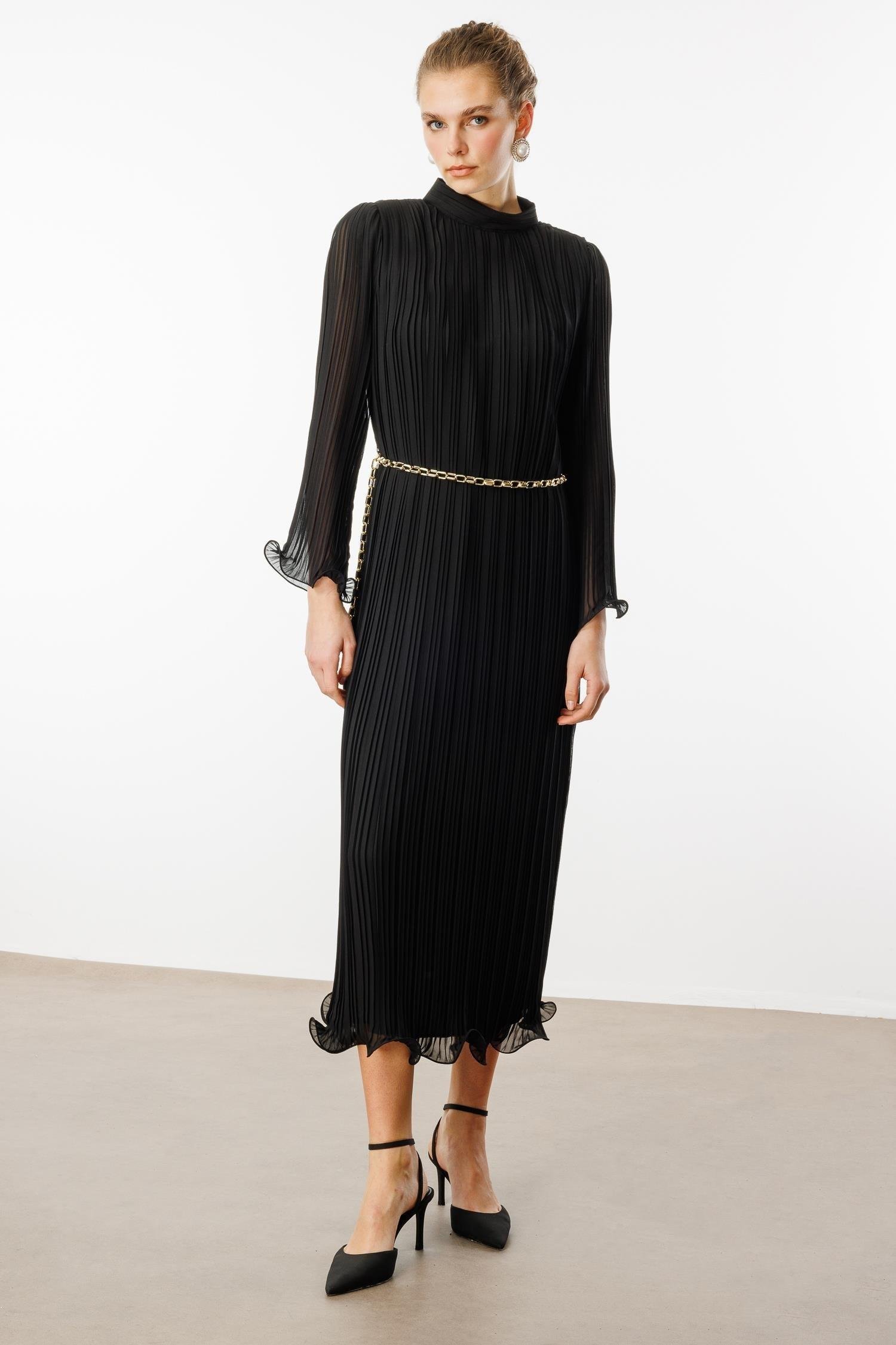MODAİLGİ  ZİNCİR KEMERLİ ELBİSE 60056 Siyah